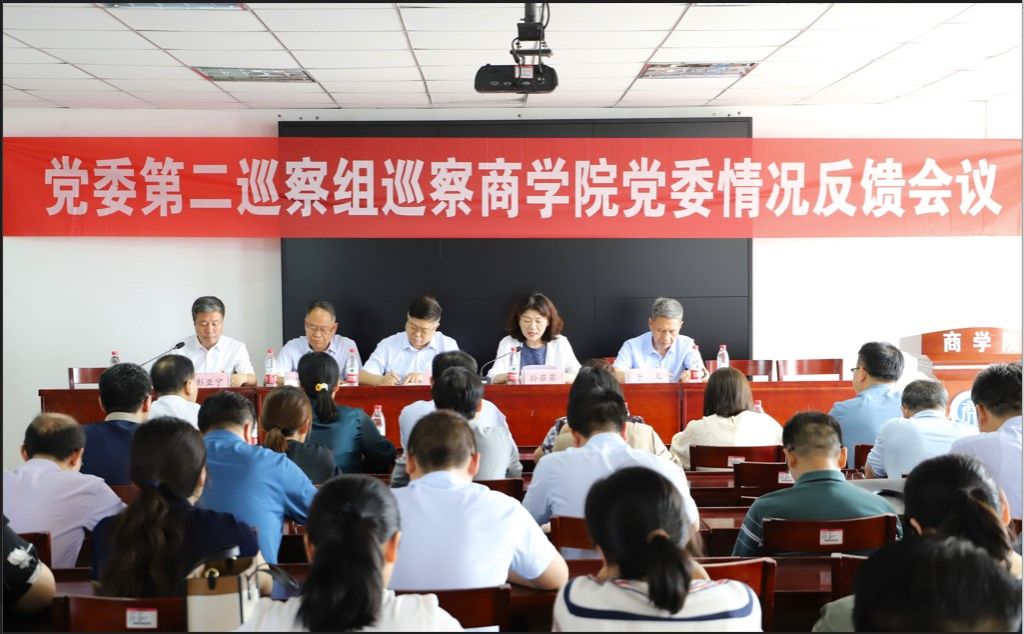 按照学校党委巡察工作统一部署,2024年5月23日下午,党委第二巡察组召开巡察商学院党委情况反馈会议。学校党委巡察工作领导小组办公室主任丁立波同志,党委第二巡察组长孙菲菲同志,巡察组全体成员,商学院党委班子成员和教职工代表参加会议,商学院党委书记彭亚宁主持会议。
