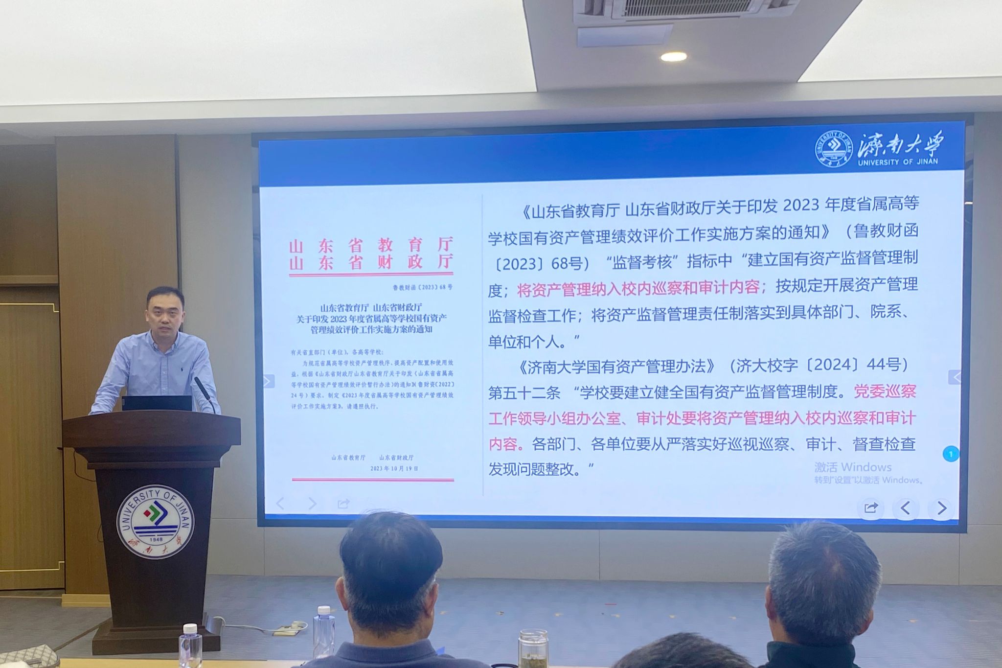刘怀柱同志介绍了落实意识形态责任制和落实宗教工作责任制两个专项巡察的巡察内容。马小渭同志介绍了资产管理专项巡察重点。