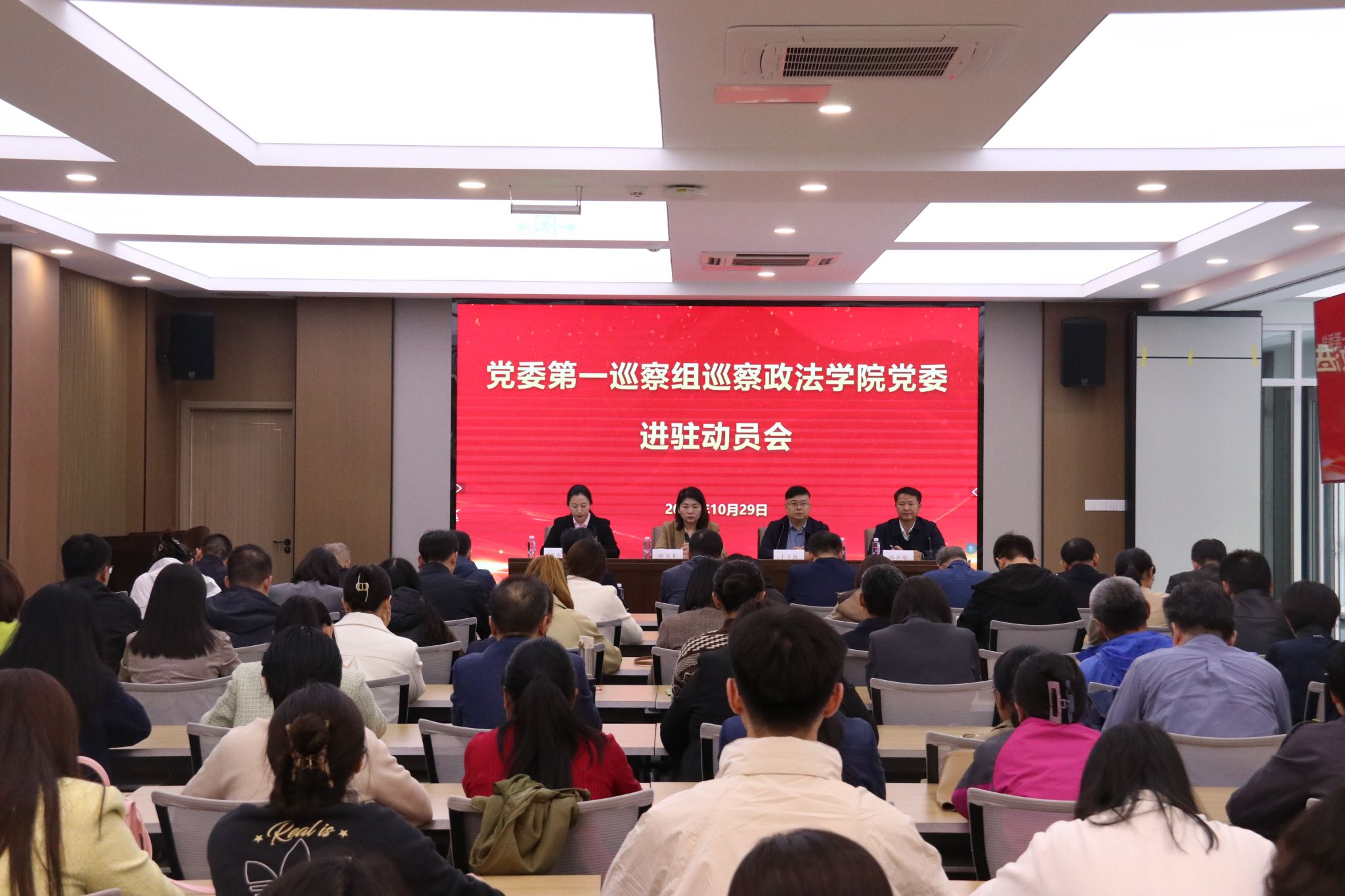 按照学校党委巡察工作统一部署,10月29日下午,yl23455永利集团党委第一巡察组巡察政法学院党委进驻动员会在学校第五学术报告厅召开。学校党委巡察工作领导小组成员、纪委副书记孙菲菲,党委第一巡察组组长丁立波及巡察组全体成员,政法学院全体教职工、部分学生代表参加会议。会议由政法学院党委书记李春慧主持。